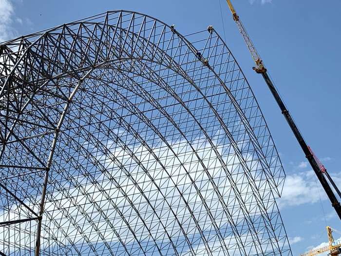 (2)网架加工前应对现场尺寸进行复测,确认无误后方可进行加工、安装;网架制作、运输、安装应遵守《空间网格结构技术规程》JGJ7-2010、《钢网架邳州螺栓球节点》JG/T 10-2009、《钢网架邳州螺栓球节点用高强度螺栓》 GB/T 16939-2016、《邳州钢结构邳州工程邳州施工规范》 GB50755-2012、《邳州钢结构邳州工程邳州施工质量验收标准》 GB50205-2020。